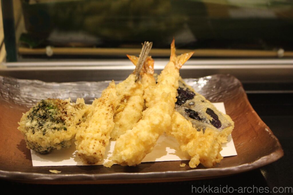 3000円くらいしましたが、高いだけあって味は至高。天ぷらは目の前で揚げたてのものを出してくれ、すこぶる美味しかったです。日本を出国する前に最高の日本食でした。