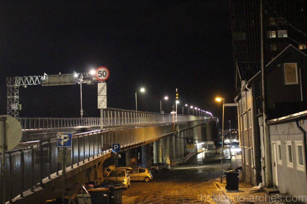 やがてトロムソ橋にやってきました。この橋で海を渡り、反対側の陸地に行きます。全長1kmの長い橋です。