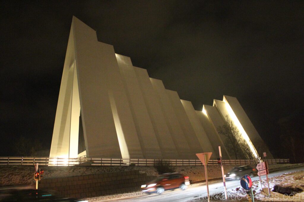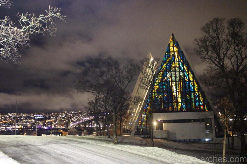 教会とトロムソの夜景。初日から感動の連続です。
