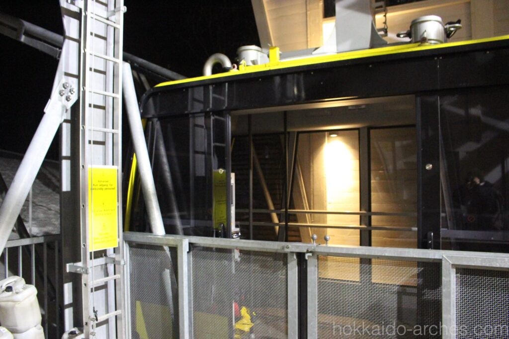 気温がどの程度なのかはわかりませんが、寒さを忘れて燥ぎすぎても大丈夫。ロープウェイ乗り場まで行けば、暖房の効いているカフェがあります。迷いましたが、もうこれからオーロラが再び見えるようになるとは考えにくい空模様になったためと、ちょっと混んでいたので、立ち寄らずに下山することとしました。