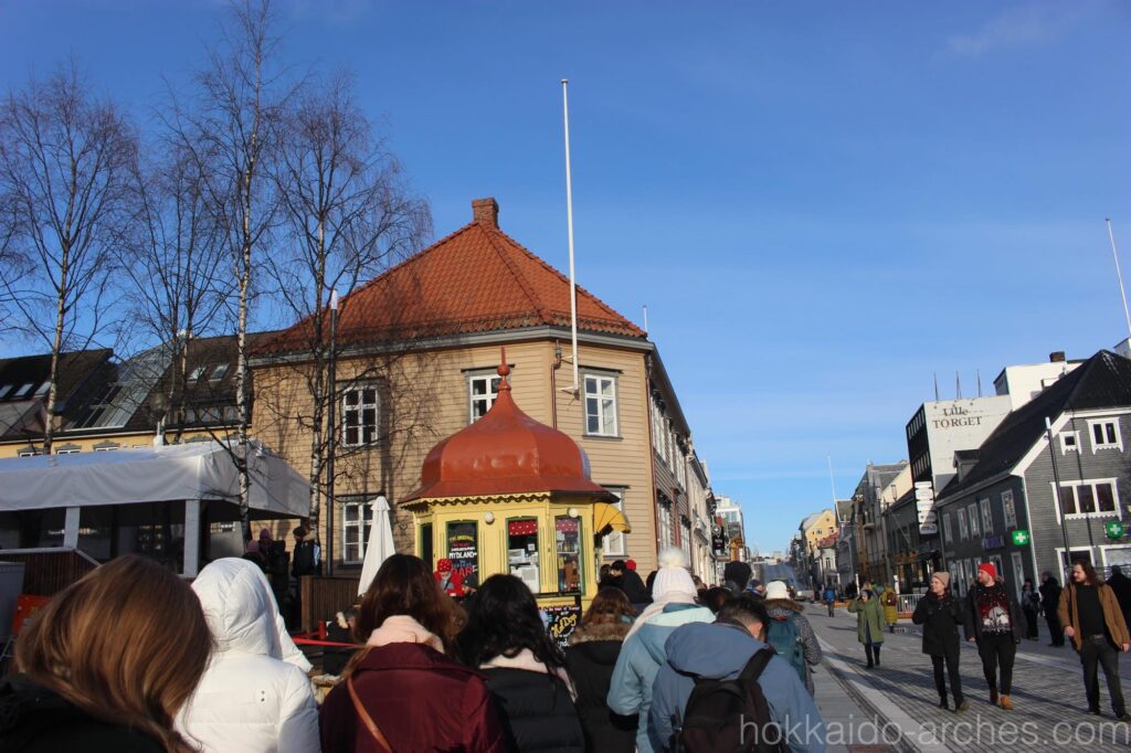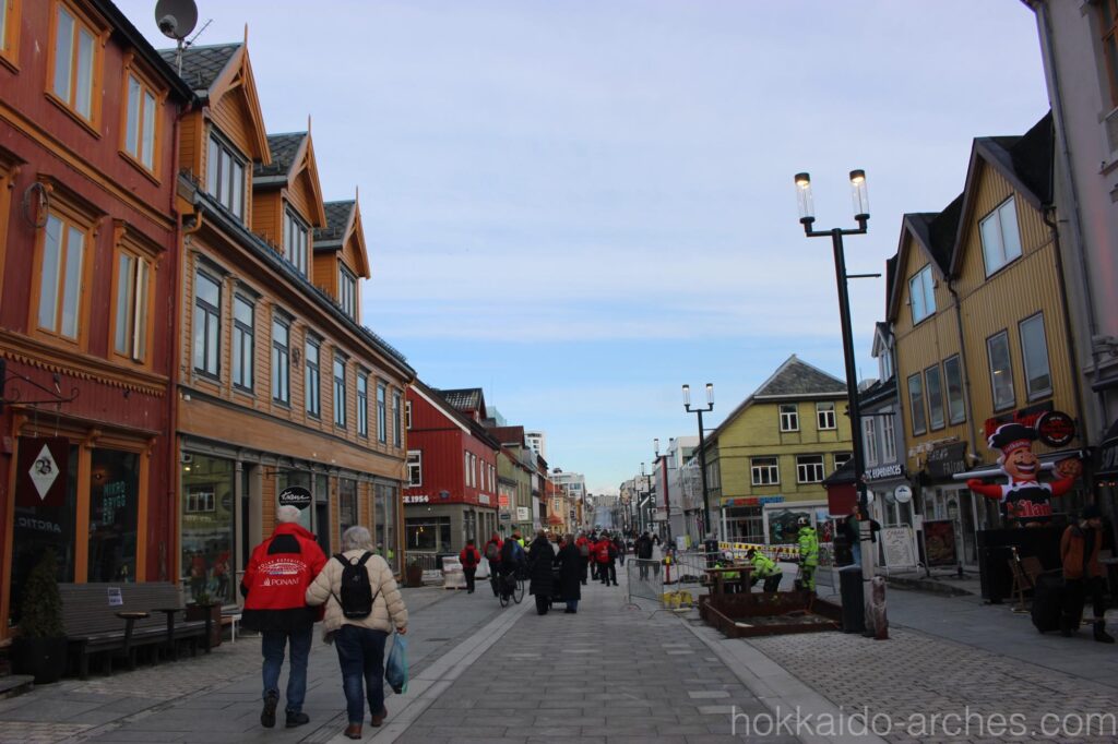 トロムソでは夜までオーロラを見る人が多いからか、街の目覚めは遅めです。多くの店が10時開店や11時開店です。ちょっと宿で朝食をとってまったりしてから散策、という感じがなんとも優雅です。お土産物屋さんもかなり充実しており、土産物を冷やかしたりして時間を潰します。店ごとに「カラー」が異なって、それぞれ自分はこのお店のカラーが好き!みたいなのが割とあります。函館や小樽も本当に散策の楽しい街ですが、お土産物のお店ごとにカラーを感じることはあまりなく、このような感覚は新鮮です。