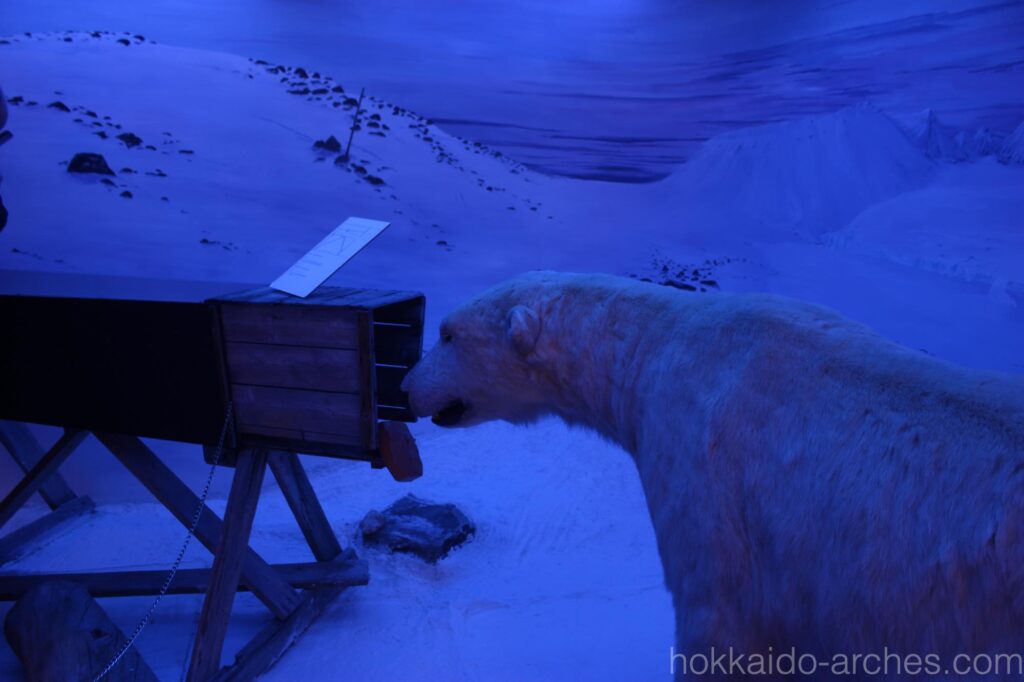 とはいえ、受付で日本人であることを伝えると日本語の案内をくれました。ただ、この北極博物館、1階2階と所狭しと展示があるのに、日本語の案内はA4用紙1枚のみ。非常にざっくりしています。それでもこんな場所で、日本人観光客にも説明を用意してくれている、というのがもう感激です。ありがたいですね。