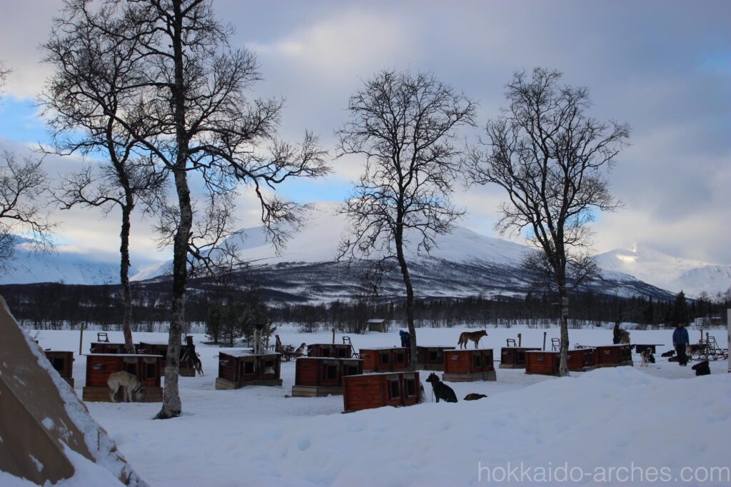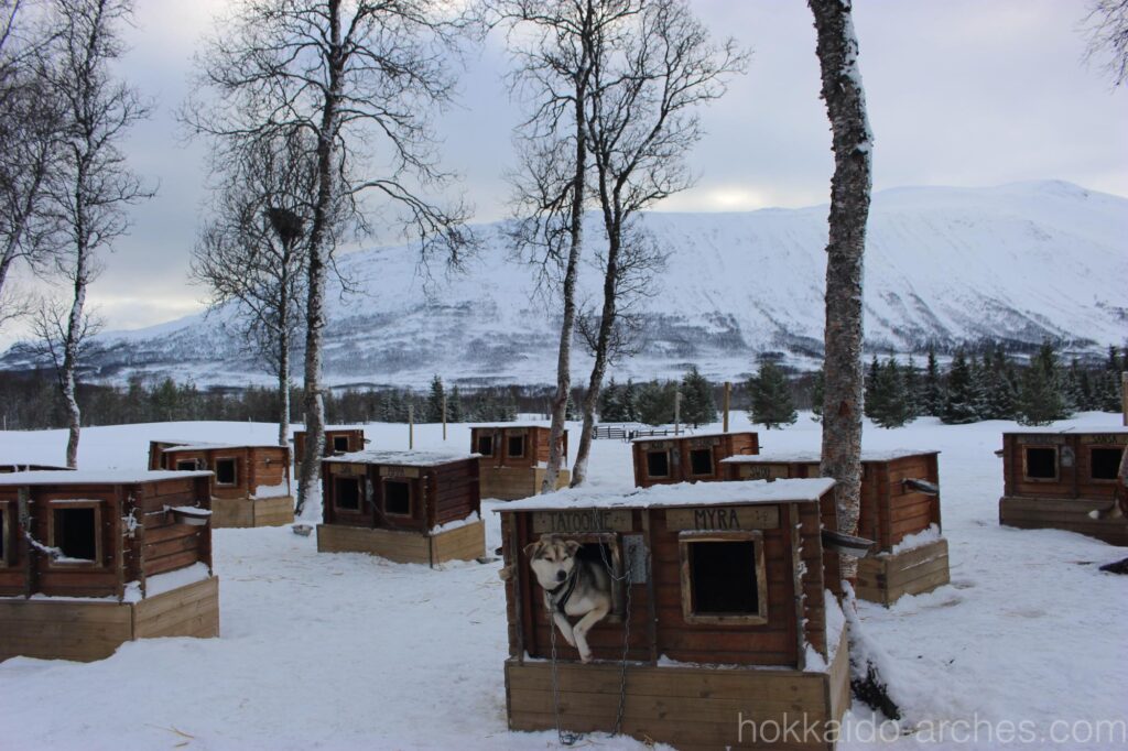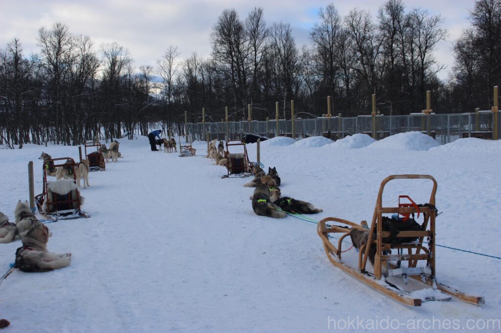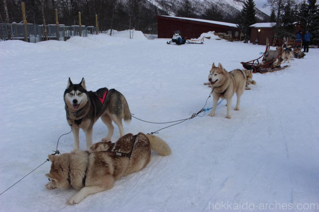 さて、到着です。バスを降りればハスキー犬の匂いが鼻をつきます。やっぱり匂い結構あるんですね。